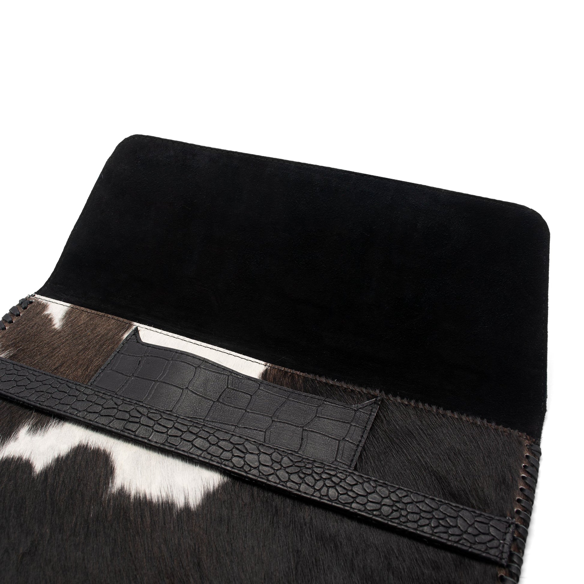 The Levante Luxe Hide Sleeve is a seamless fusion of rugged elegance and refined utility, handcrafted for those who appreciate premium craftsmanship and striking aesthetics. Made from exquisite cowhide leather with a natural hair-on finish, and lined with luxurious black goat suede, this sleeve offers a soft, secure cradle for your MacBook or iPad. The sophisticated croc-embossed leather detailing on the flap and strap adds a refined edge, making this sleeve more than just protective – it’s a true fashion statement.
